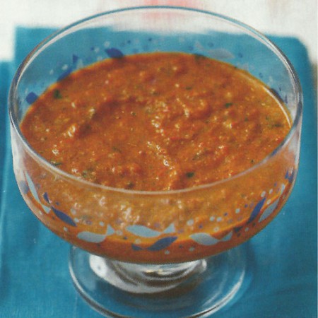 Kırmızıbiberi kzleyip kabuğunu soyun. Havucu, maydonozu, kıymayı ve çekirdekleri temizlenmiş domatesi bir tencereye aktarın. İyice haşladıktan sonra tüm malzemeyi püre haline getirin.